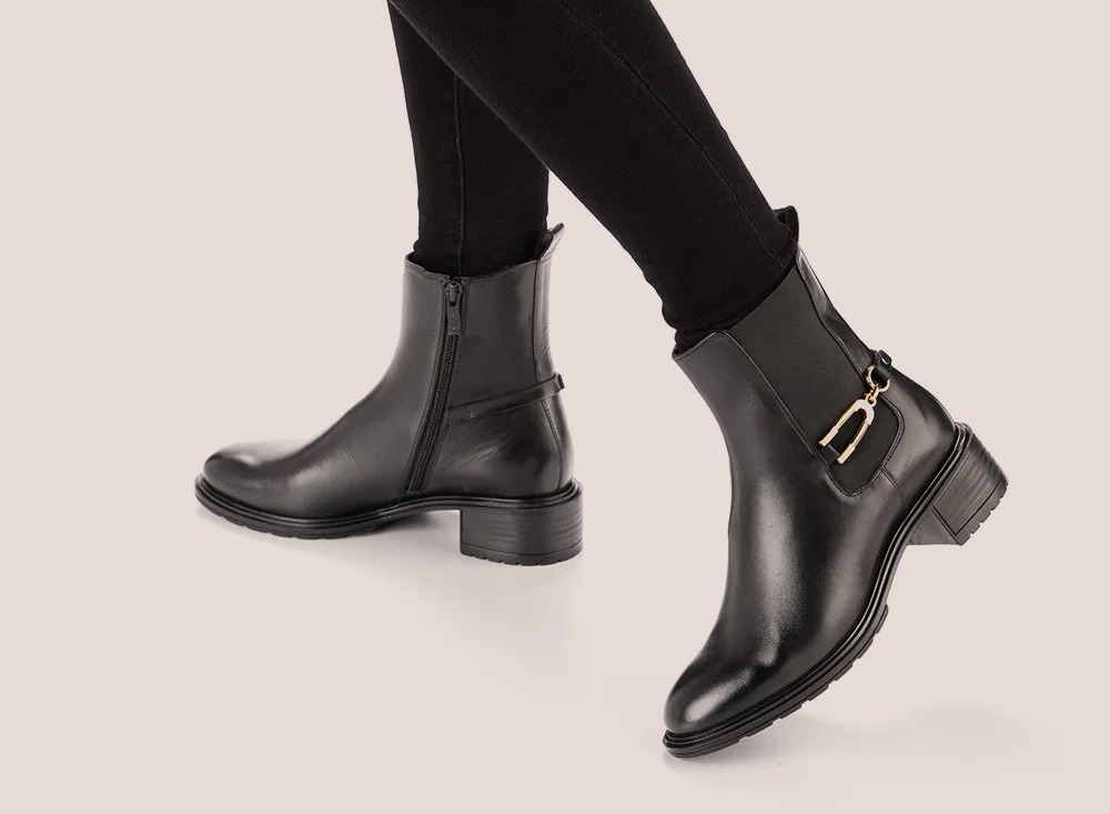 El diseño de los botines PARIS es atemporal y versátil. El delicado adorno metálico le otorga un toque de sofisticación, mientras que la cremallera lateral facilita su puesta. Es el complemento perfecto para cualquier armario, desde los looks más informales hasta los más elegantes.