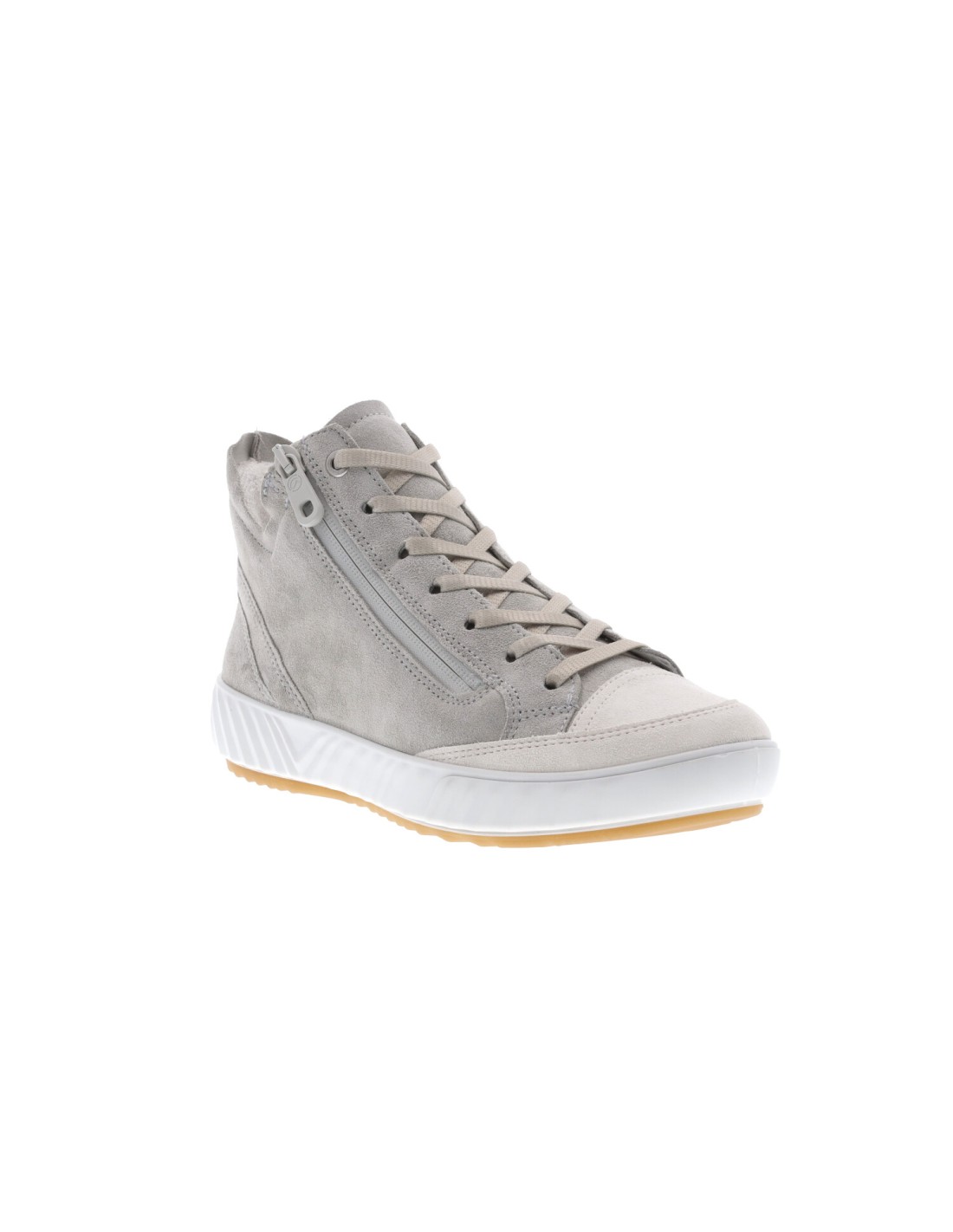 Zapatilla abotinada, en serraje gris combinado, cordoneras y cremallera, funciones A-Round, Bamboo y plantilla extraíble