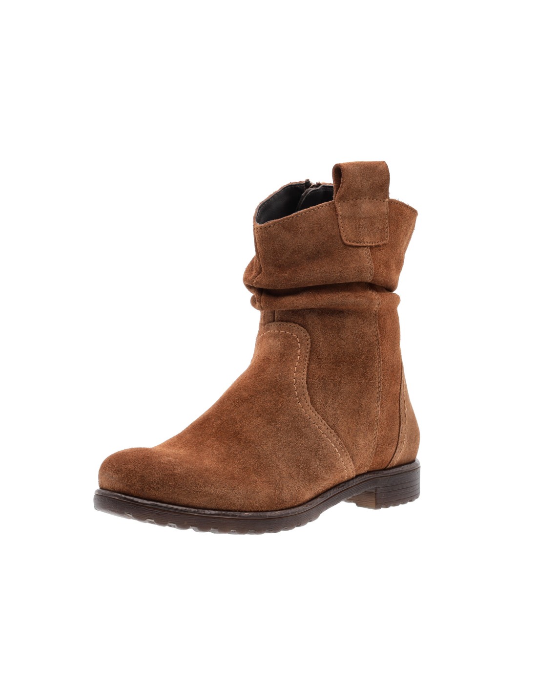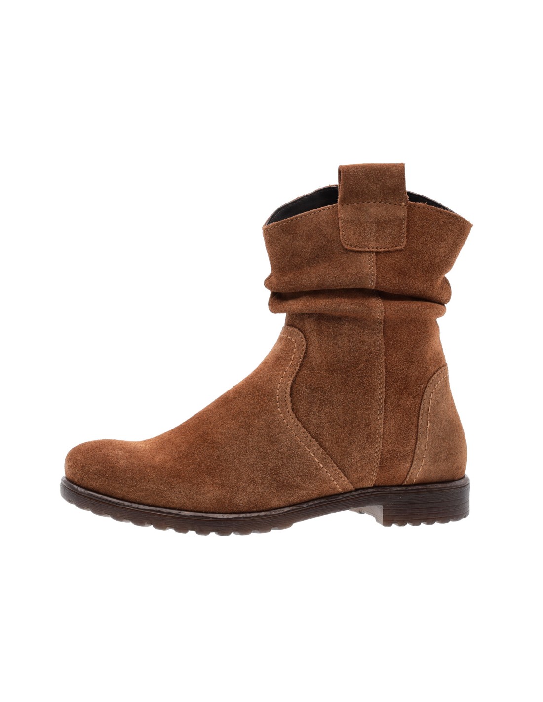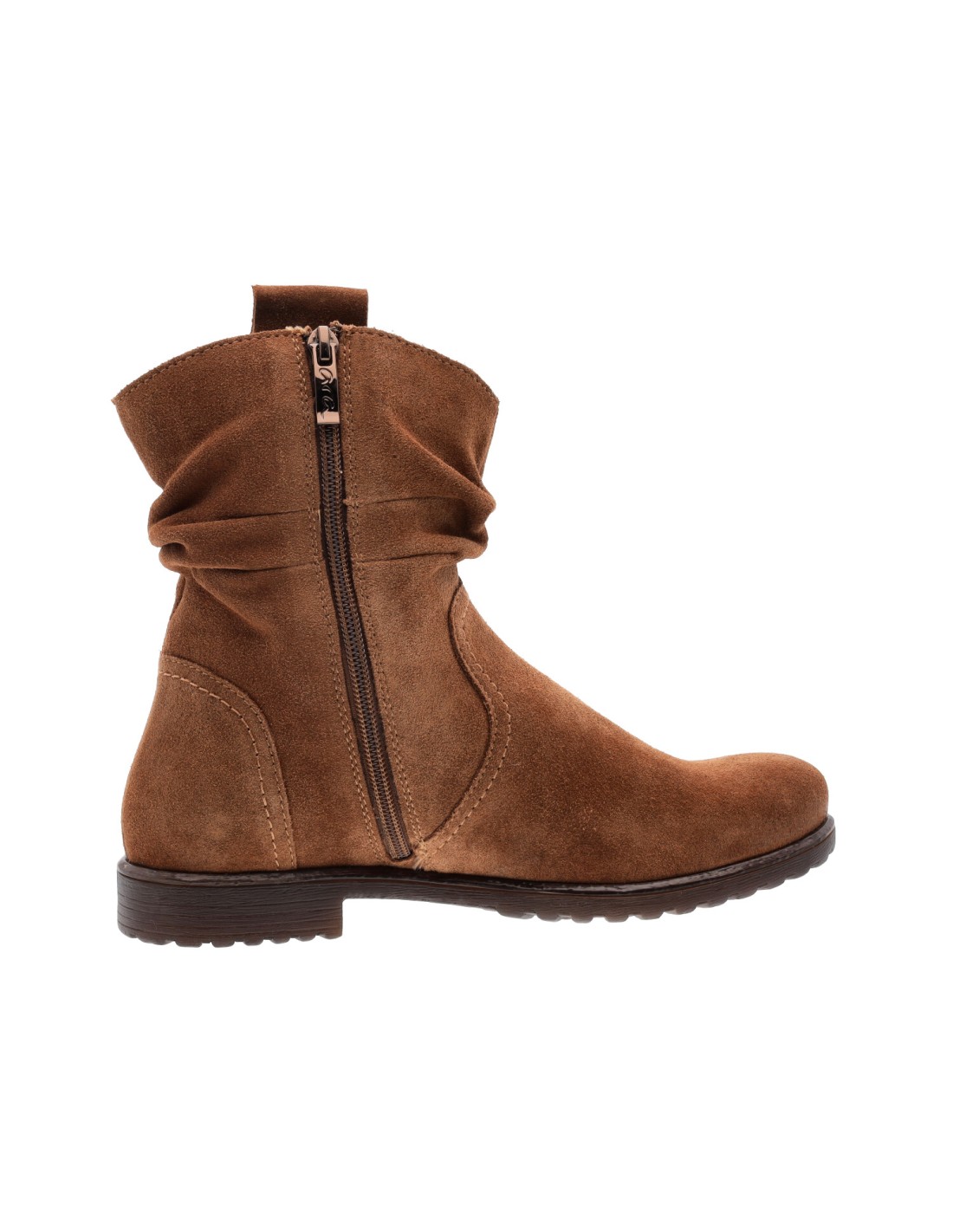 Botín con caña arrugada, juvenil, tacón bajo 20mm, en Ante Cuero, forro caliente,  con funciones High Soft y plantilla extraíble.