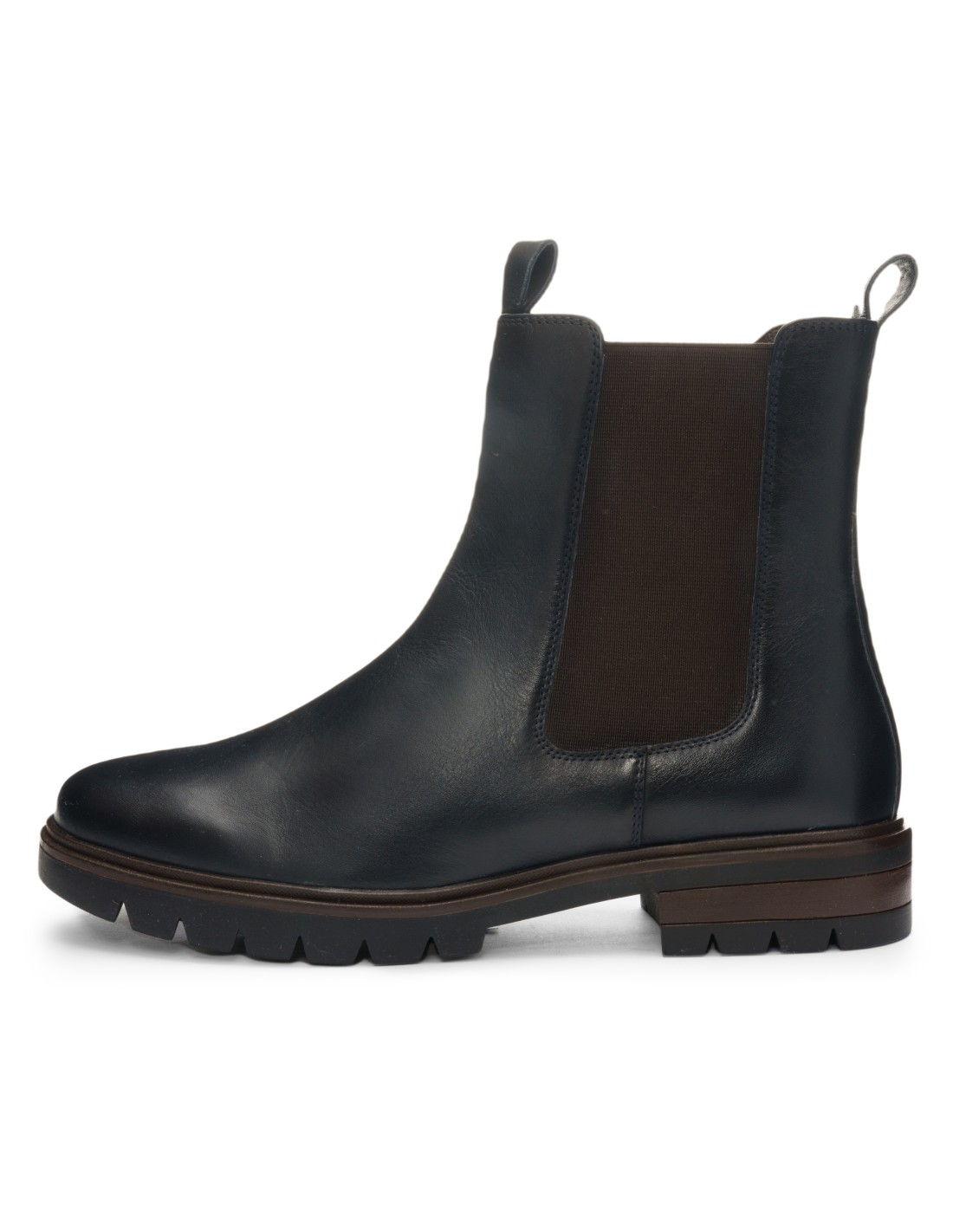 Botín Chelsea de mujer en piel color azul de la marca Ara, diseñado para ofrecer estilo y confort en cada paso. Su acabado en piel suave y tono cálido aporta elegancia y versatilidad, ideal para combinar con looks urbanos o más sofisticados. Incorpora una práctica cremallera interior que facilita el calce, manteniendo la estética clásica del elástico lateral. Equipado con tecnología HighSoft, garantiza una pisada suave, amortiguada y flexible, perfecta para el uso diario. Su suela robusta con diseño antideslizante proporciona seguridad y durabilidad. Un modelo que une tradición y modernidad, pensado para mujeres que valoran la calidad sin renunciar al diseño
