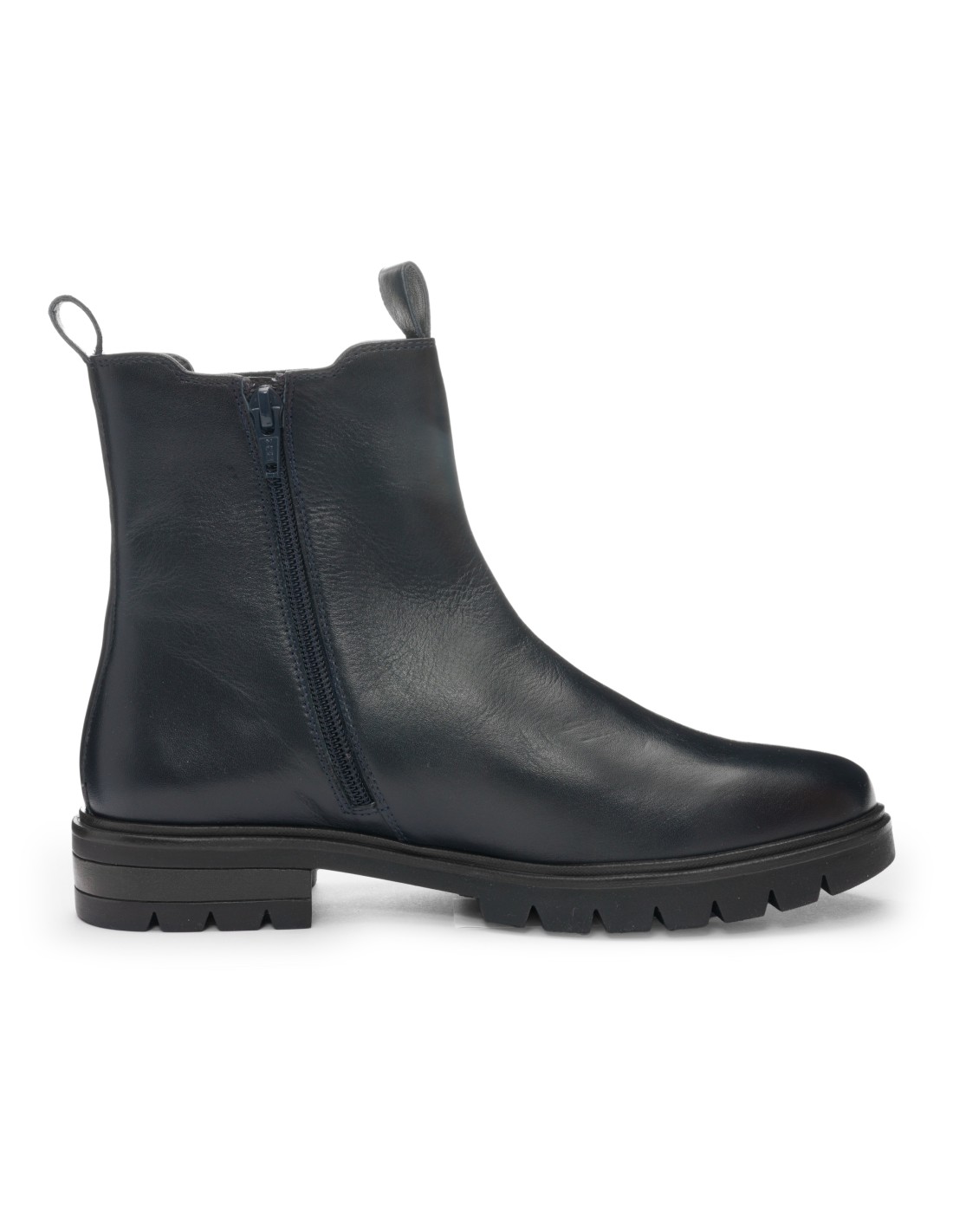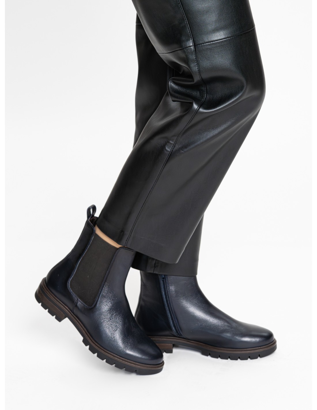 Botín Chelsea Ara en piel azul con cremallera interior. Suela robusta, ancho cómodo con plantilla extraíble y tecnología HighSoft para máximo confort diario. ¡Estilo y comodidad!