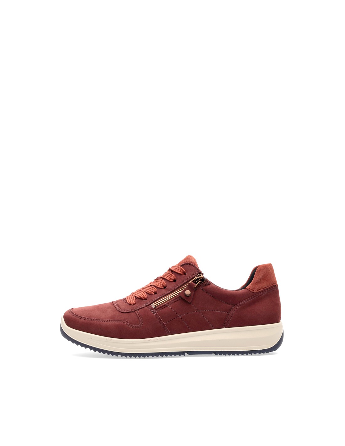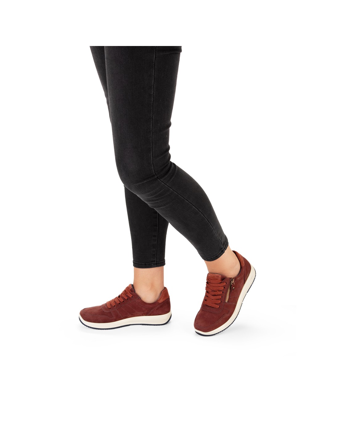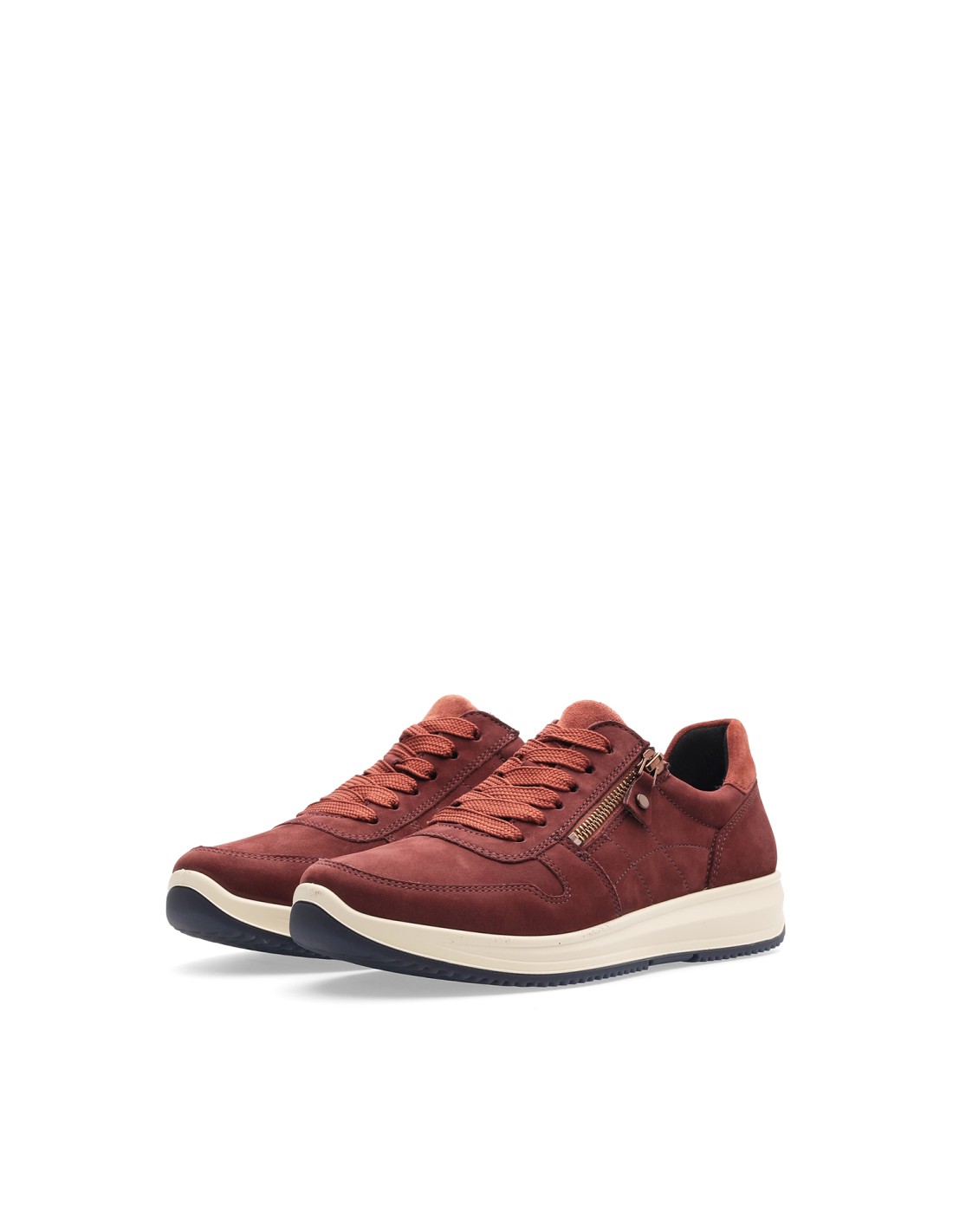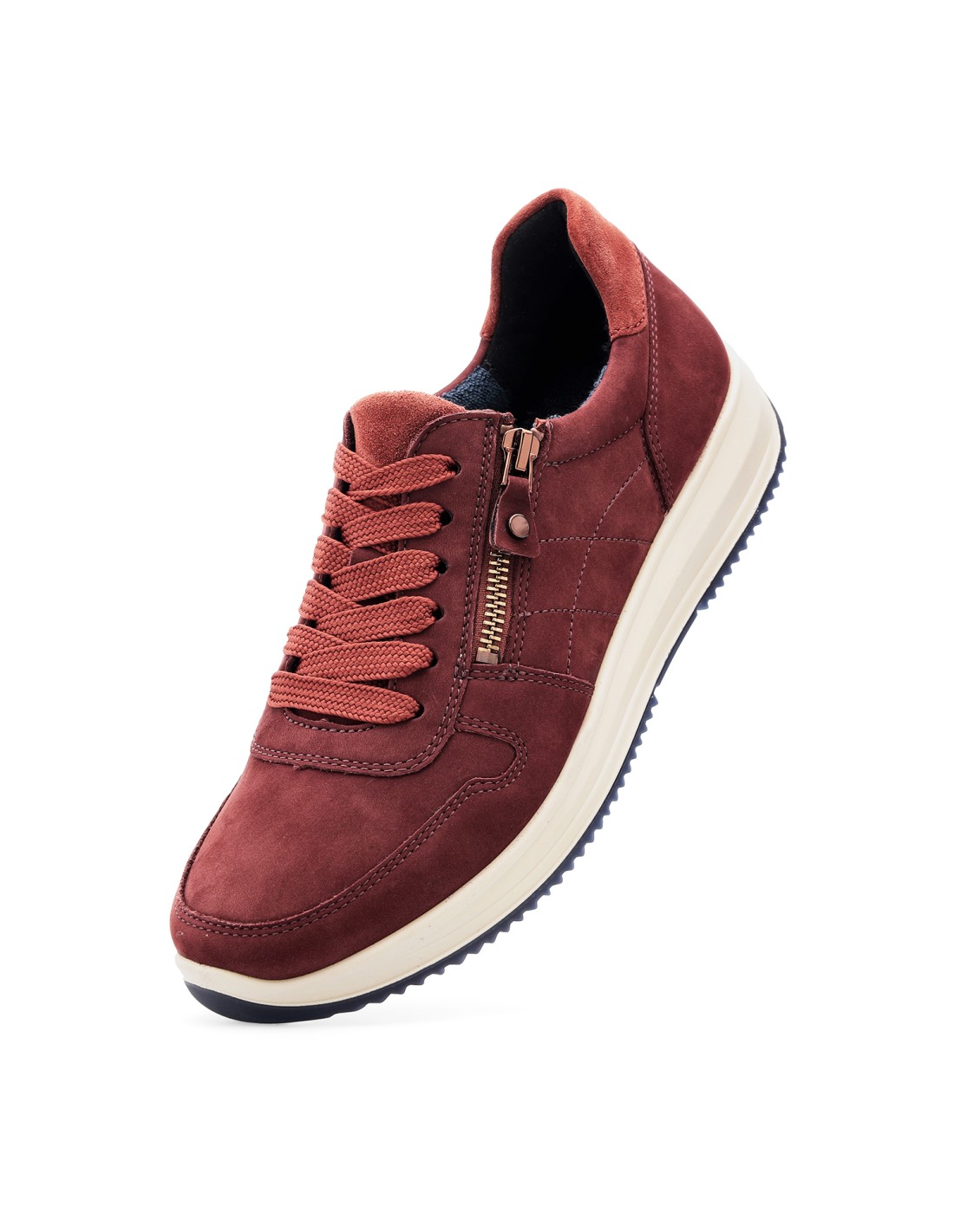 Zapatilla urbana de señora, ancho H, en Ante tonos rojos, cordonera y cremallera, funciones Bamboo, High Soft y plantilla extraíble