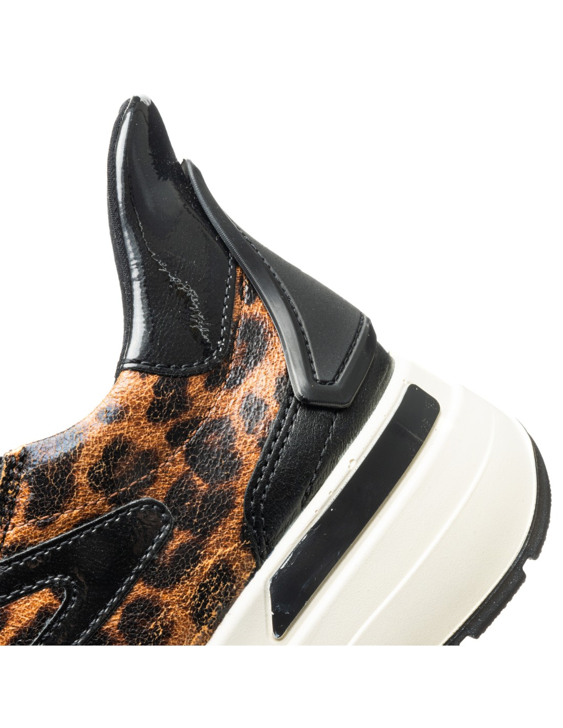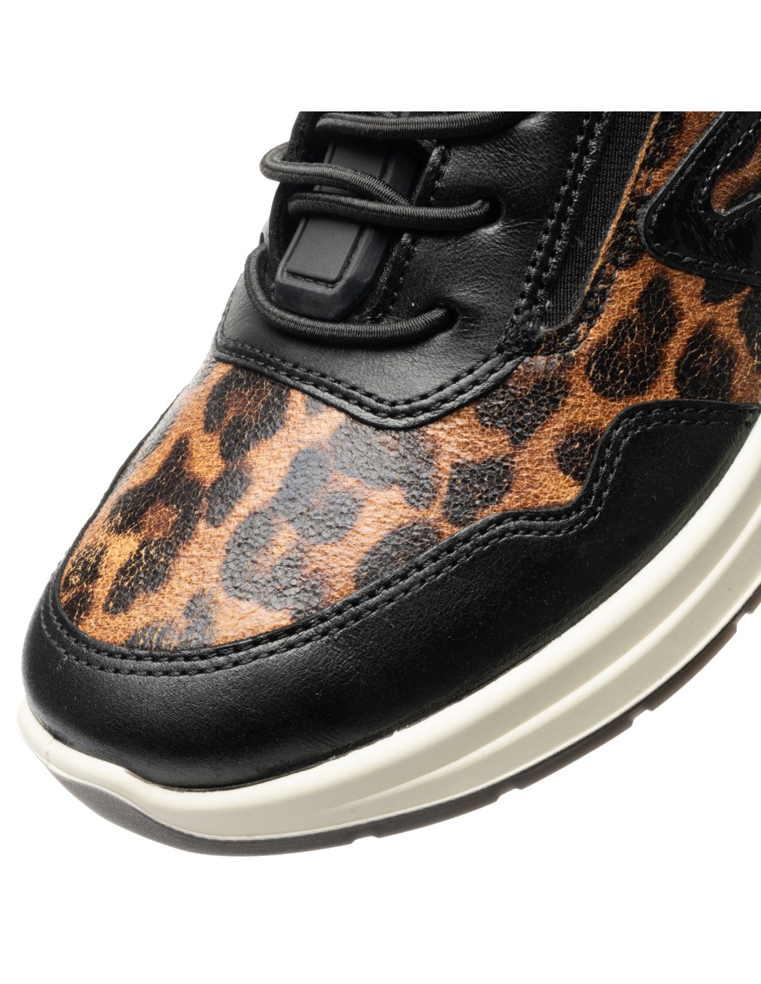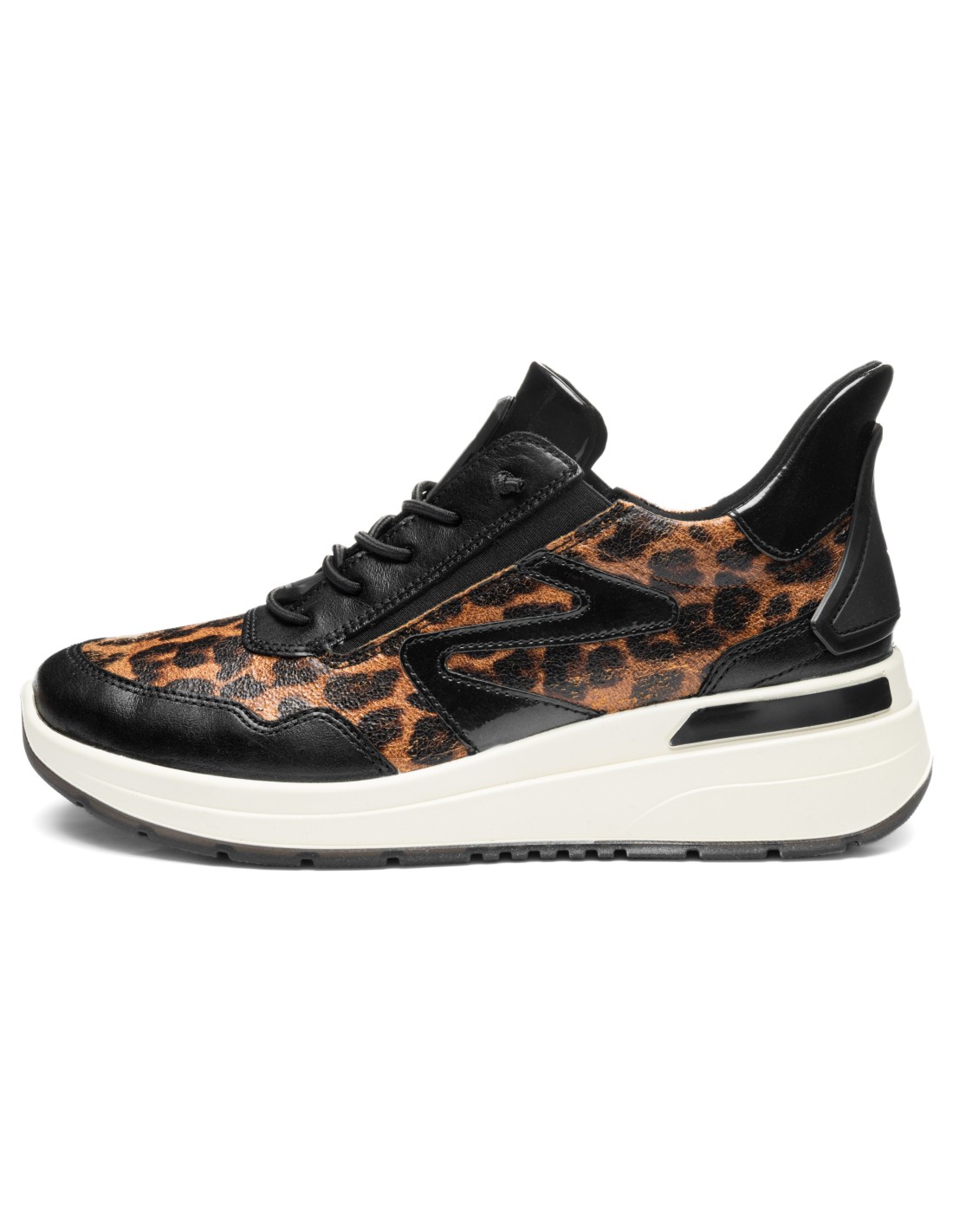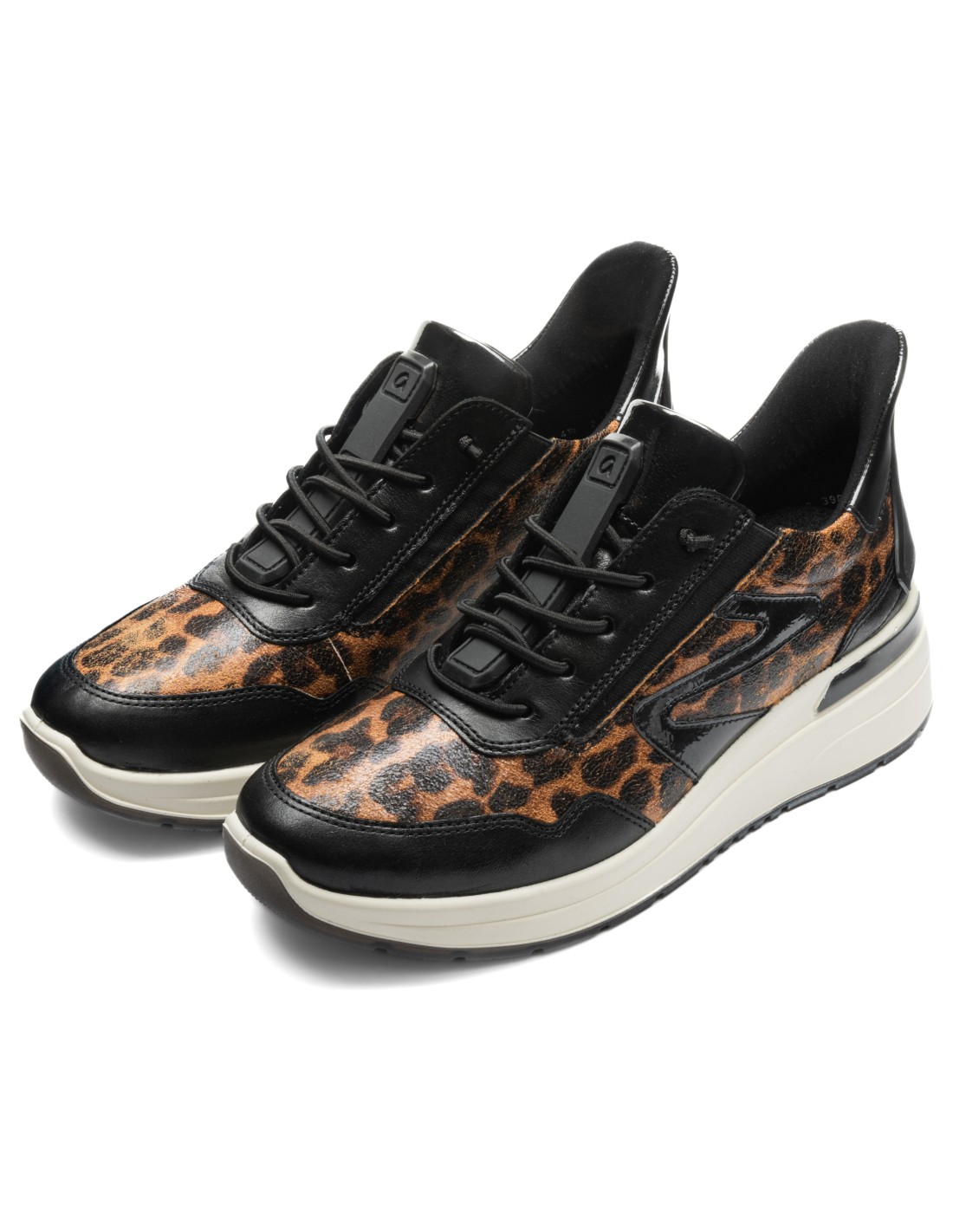 Zapato deportivo de mujer Ara en diseño animal print, con horma Garda, ancho H y cuña ligera. Ofrece ajuste cómodo para pies anchos, estabilidad al caminar y estilo moderno para uso diario.