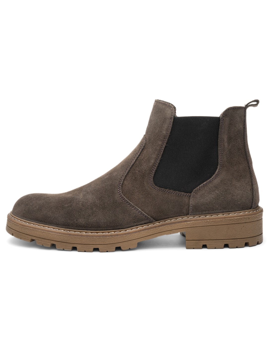 Botín tipo Chelsea de caballero en velour cognac cremallera interior. Ancho H para mayor comodidad. Diseño elegante, práctico y fácil de calzar, ideal para el día a día con estilo y confort.