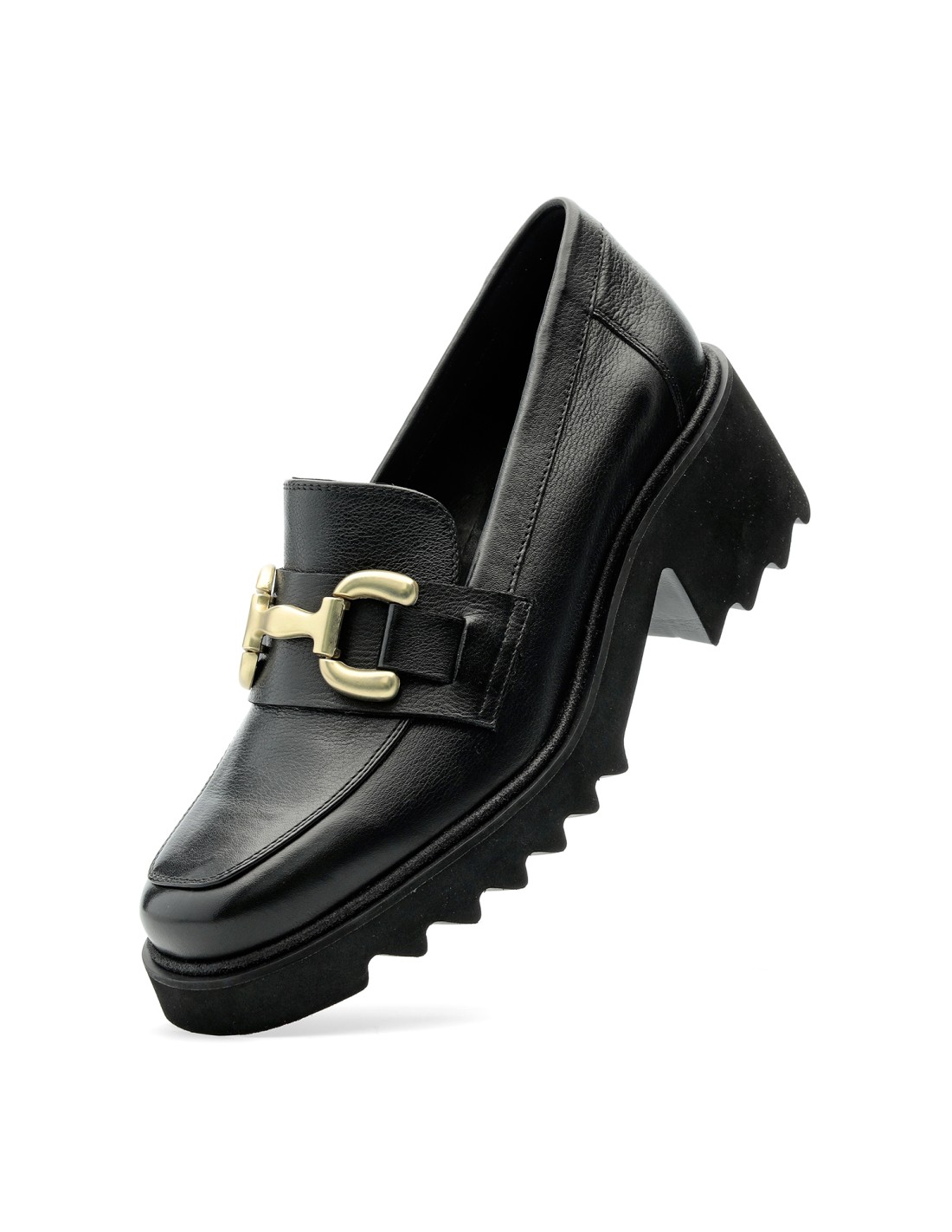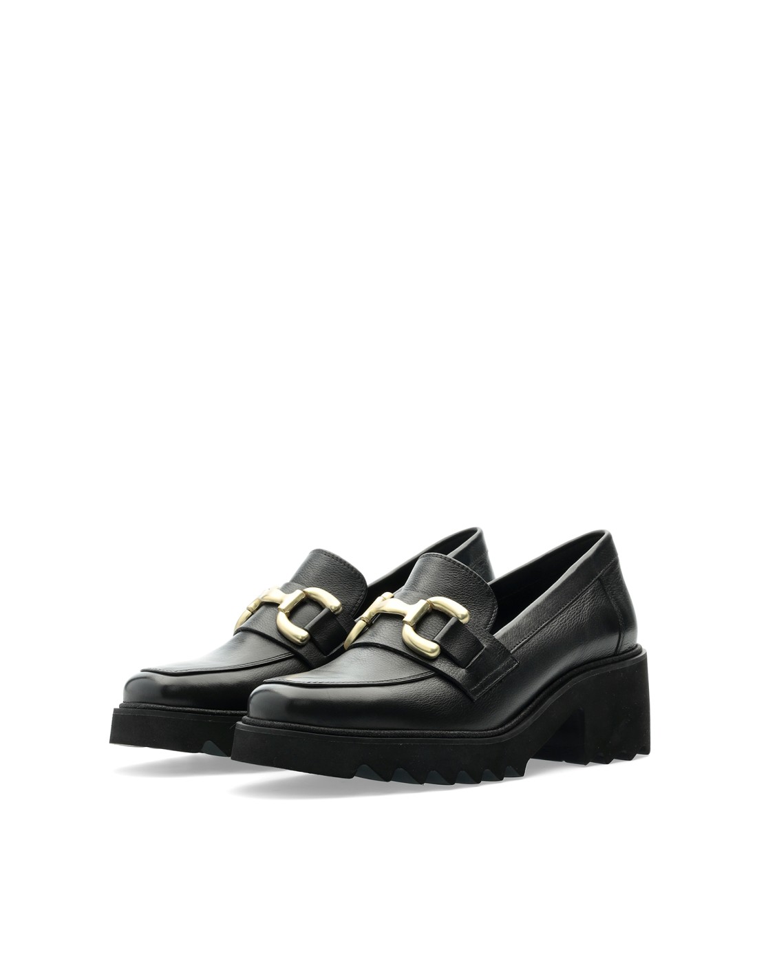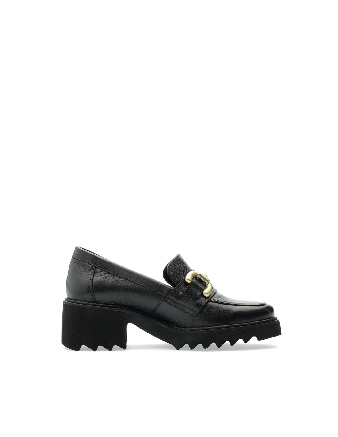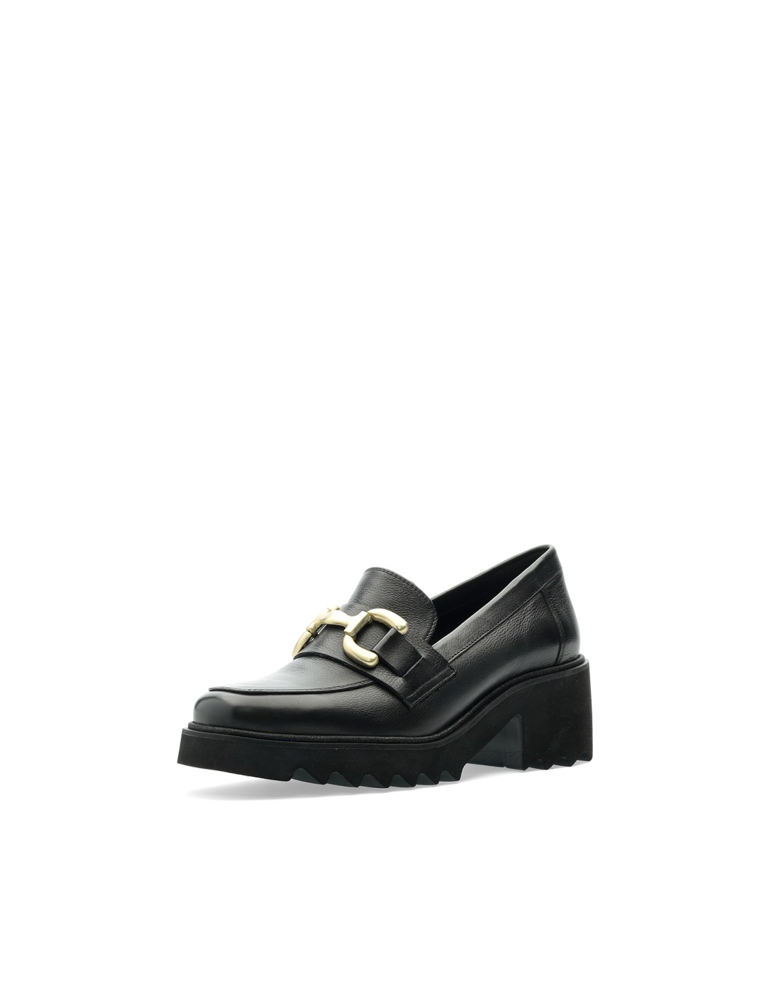 Mocasín juvenil con adorno metálico, en piel Negra, función High Soft