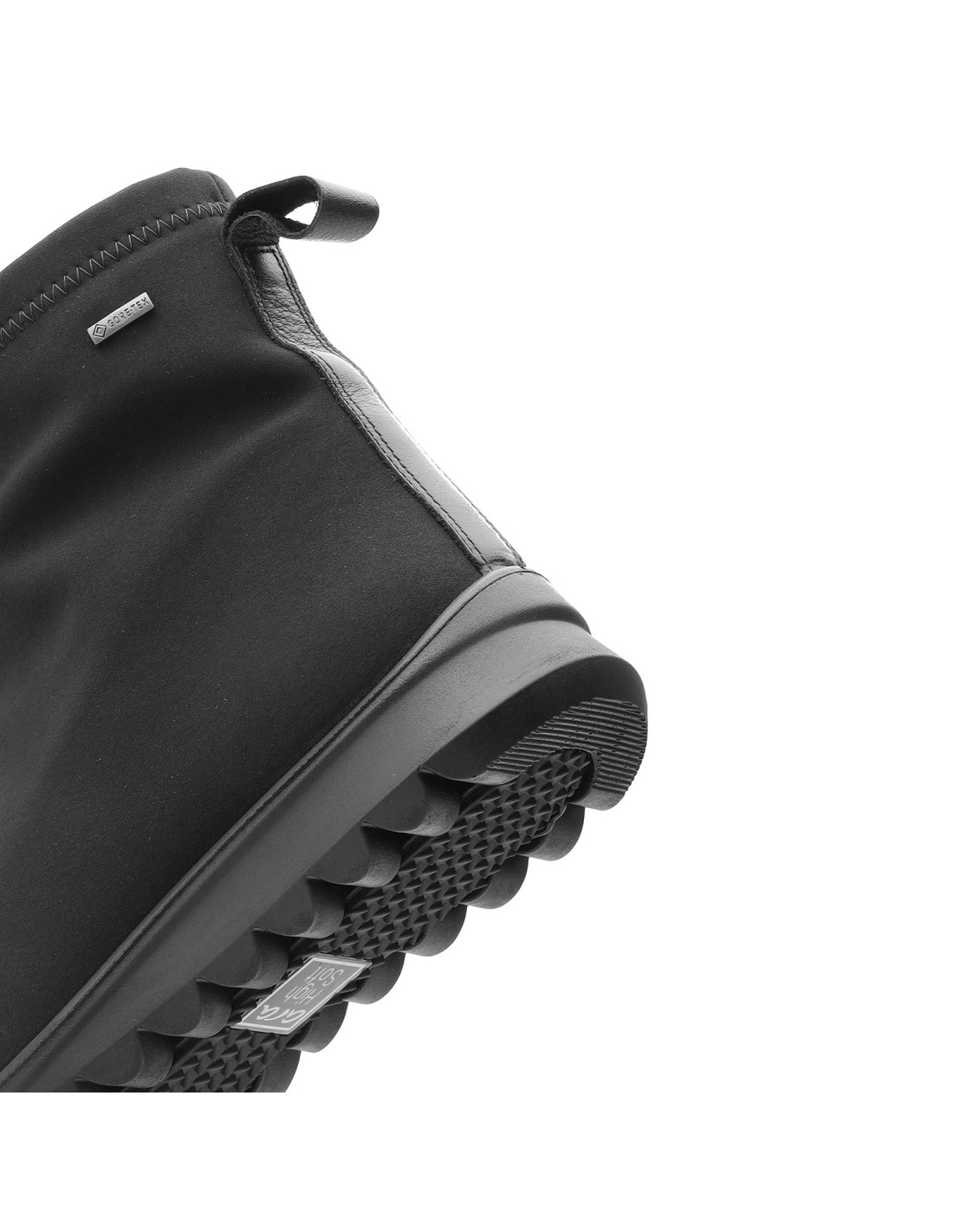 Botín en ancho H, HydroTextil Negro, altura de piso 30mm, con cremallera, funciones Gore-tex, High Soft y plantilla extraíble.