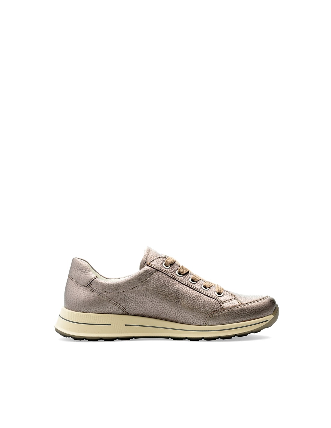 Sneaker señora, ancho H, en piel Metalizada Moon, con cierre de cordones y cremallera para mejor ajuste, altura 30mm, funciones Bamboo, High Soft y plantilla extraíble