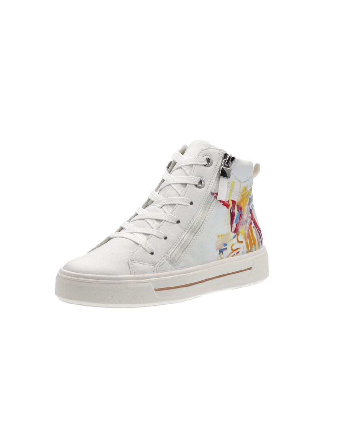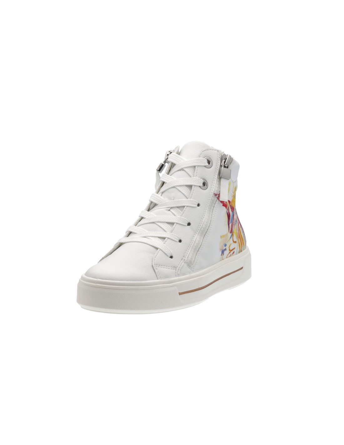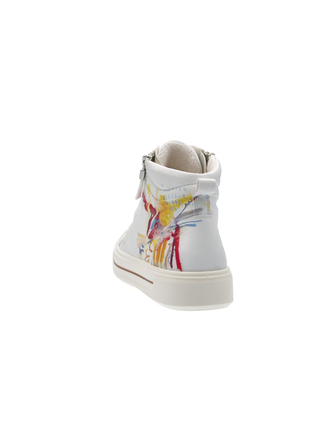 Zapatilla abotinada, en piel Blanca con detalle multi color, cierre cordones y 2 cremalleras, función High Soft.