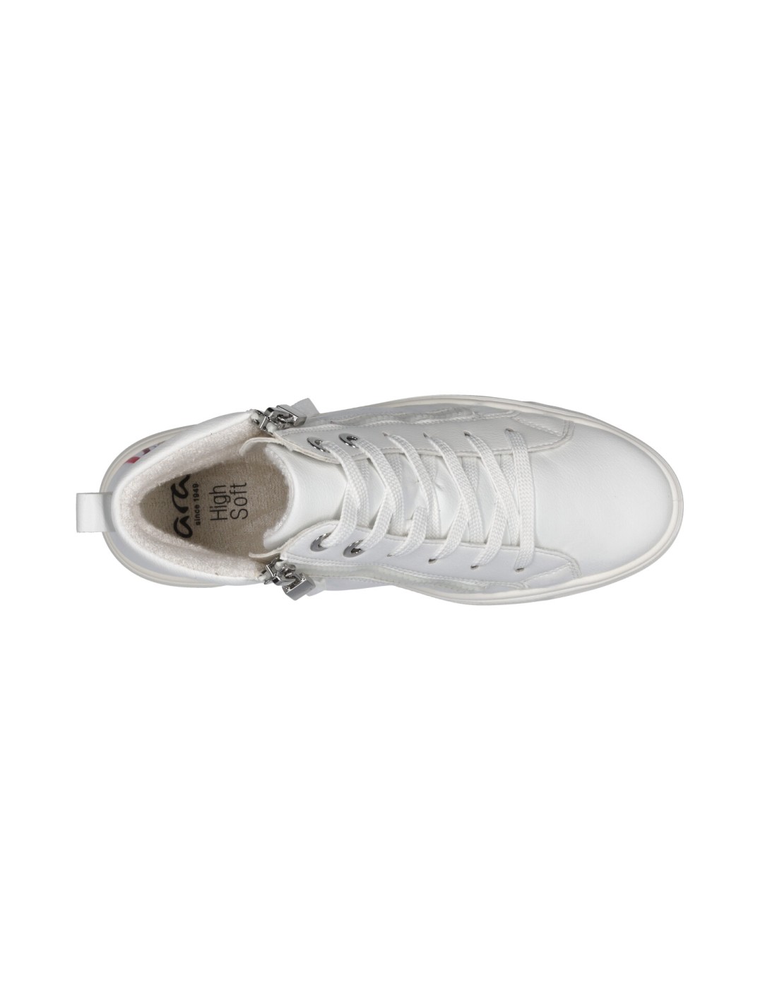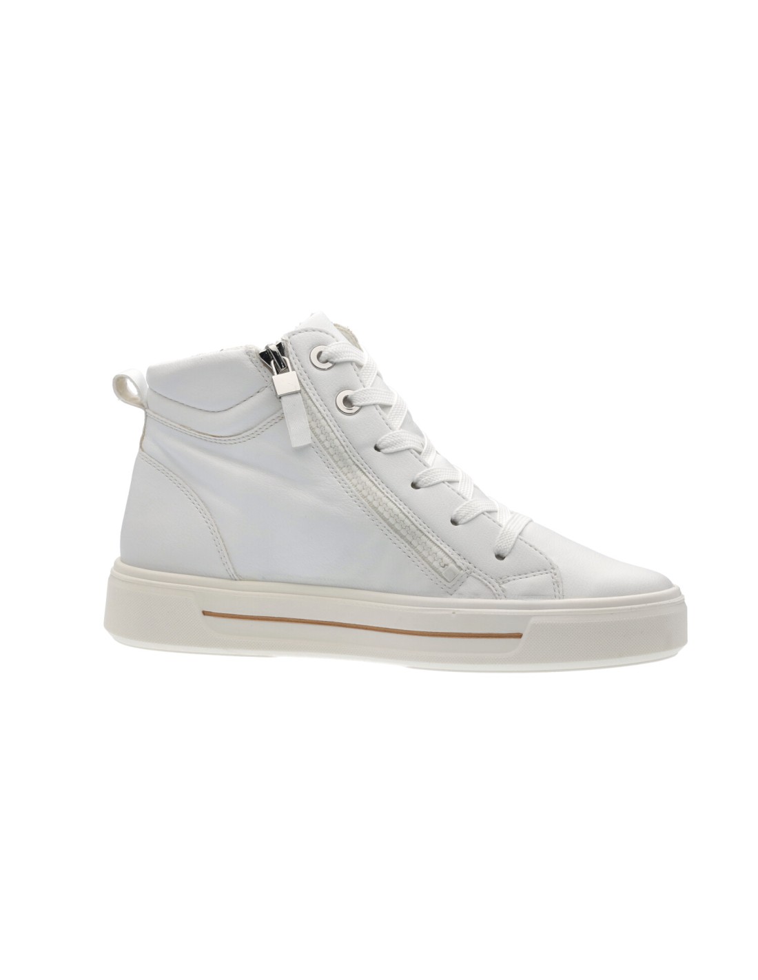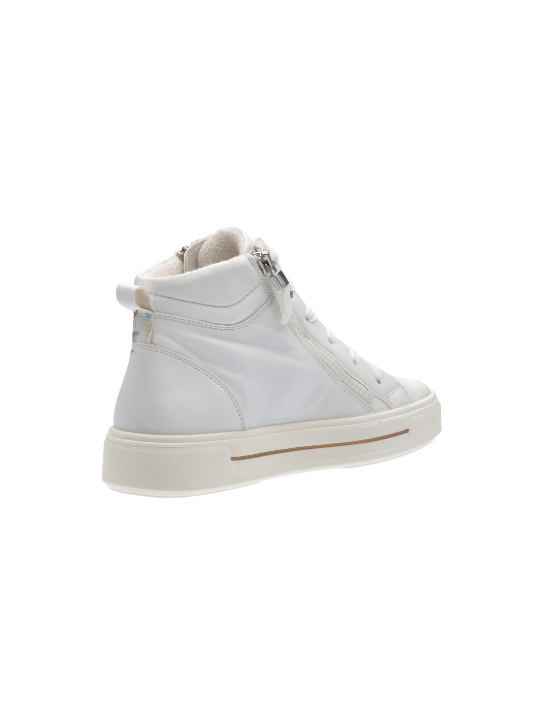 Zapatilla abotinada, en piel Blanca con detalle multi color, cierre cordones y 2 cremalleras, función High Soft.
