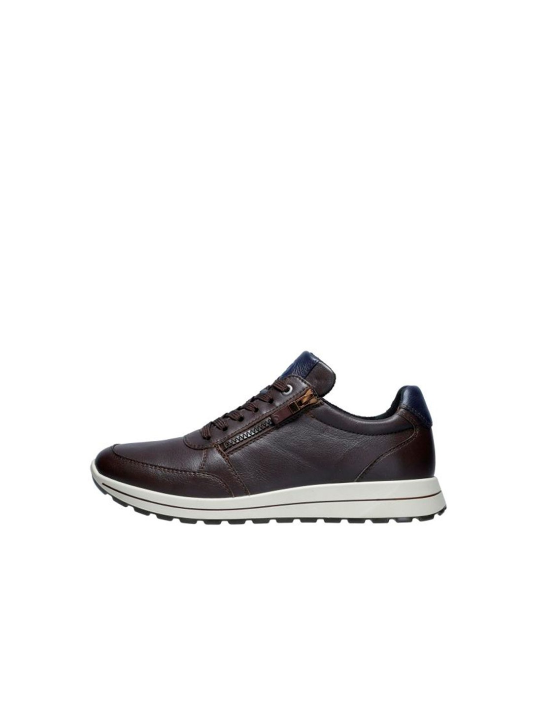 Deportivo casual, cordoneras y cremallera, Calf Marrón y Azul, funciones High Soft y plantilla extraíble