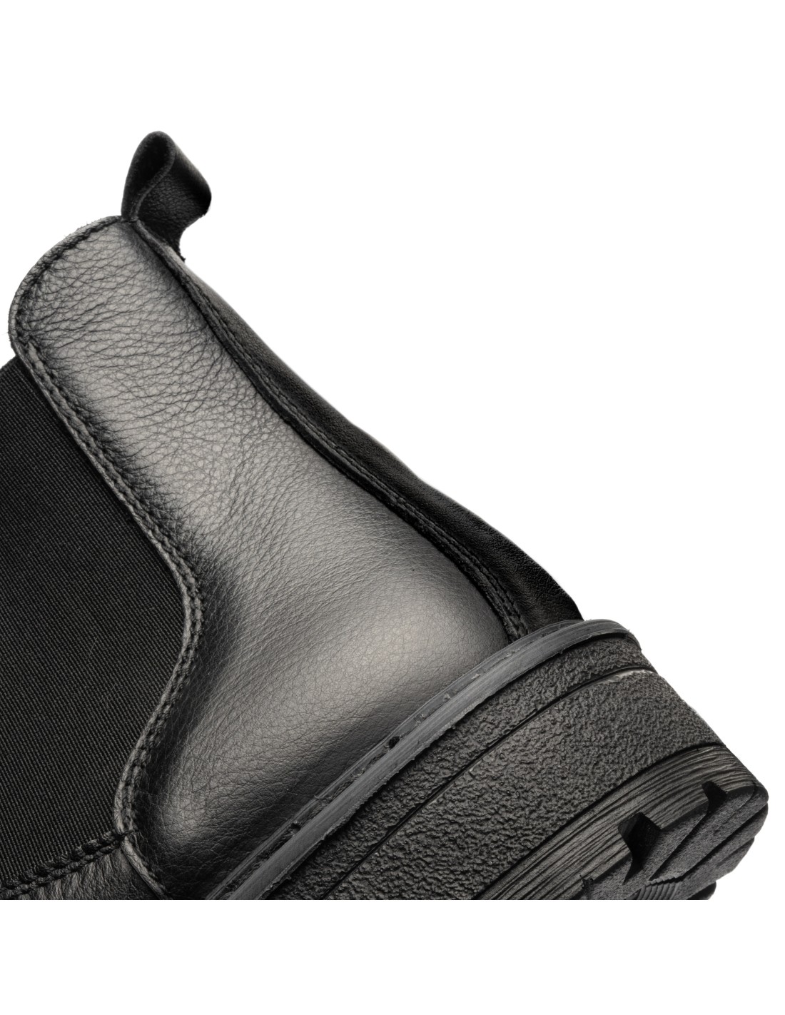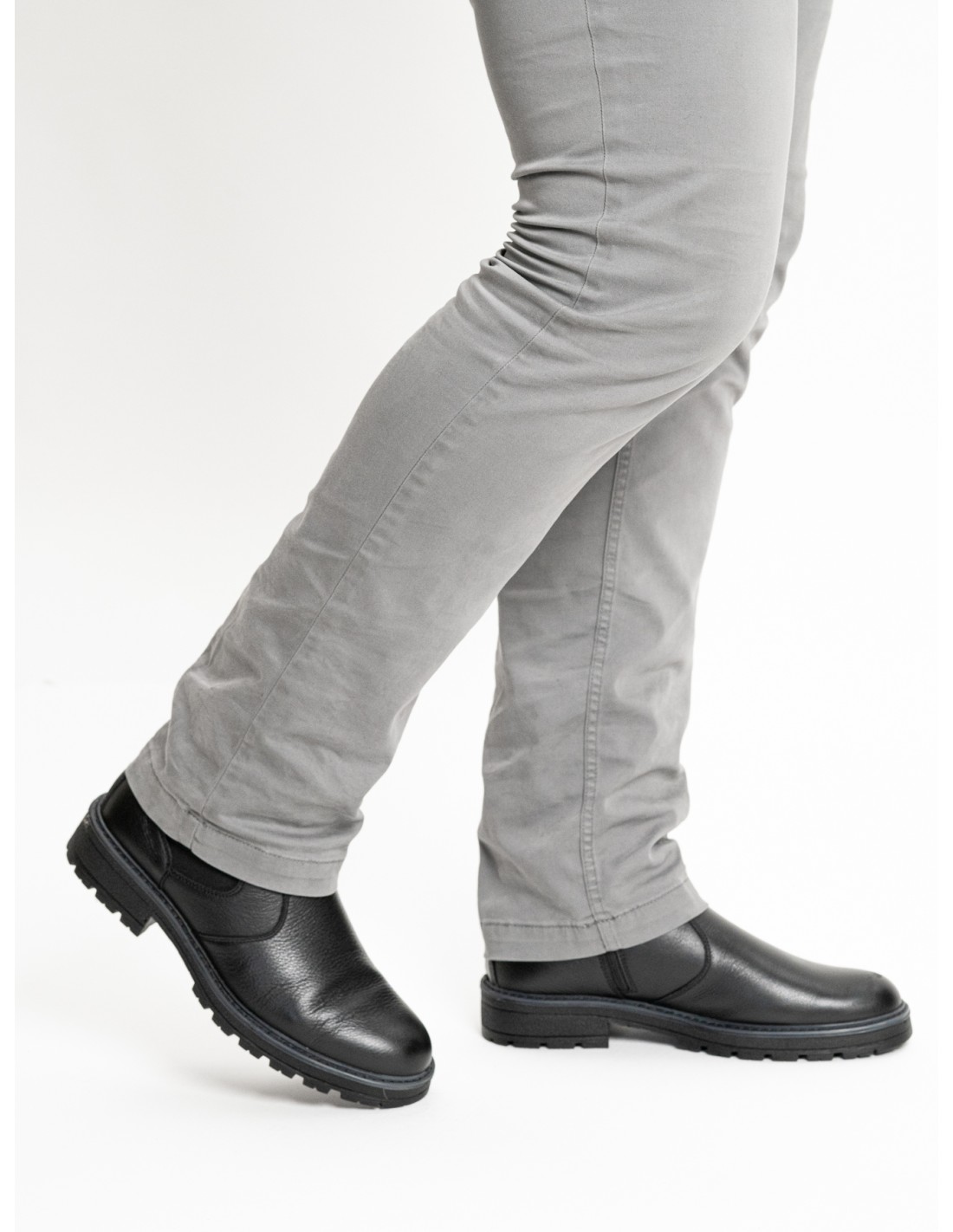 Este botín de caballero tipo Chelsea combina elegancia clásica y confort moderno. Fabricado en piel negra de alta calidad, destaca por su diseño atemporal, fácil de combinar con looks casuales o más formales. A diferencia del Chelsea tradicional, incorpora una cremallera interior, que facilita el calce rápido sin perder la estética limpia del modelo.